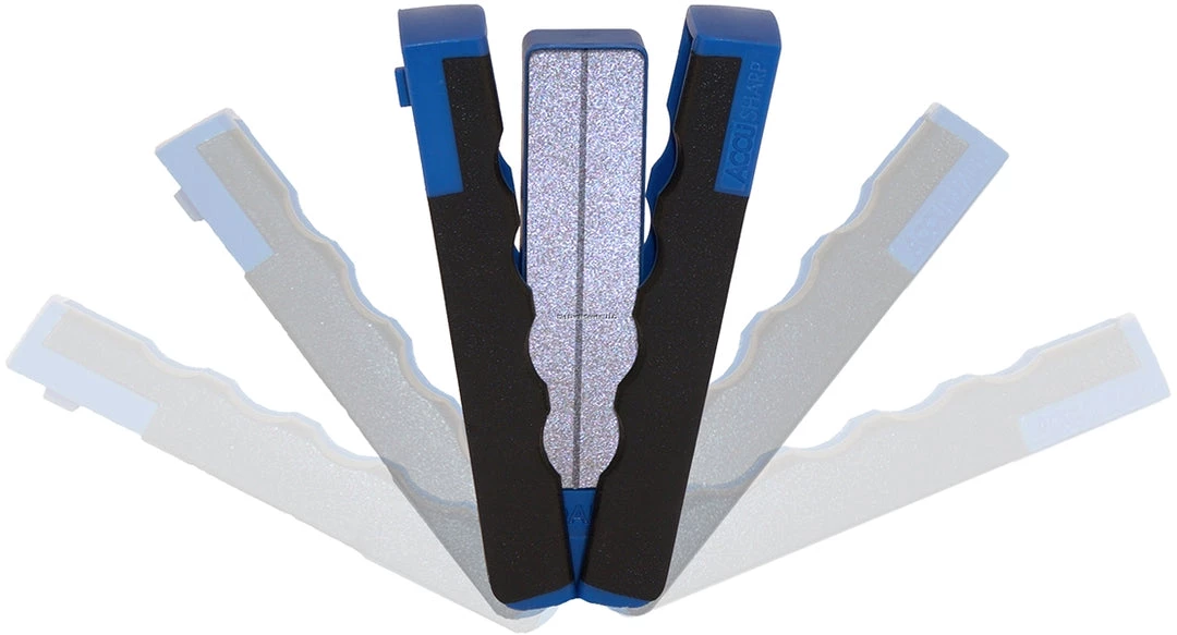 This double-sided sharpener features an aggressive coarse diamond grit surface, a ne diamond surface for honing and nishing, and also includes a groove for sharpening hooks and darts. The folding handle allows you to fold and store your sharpener with ease.