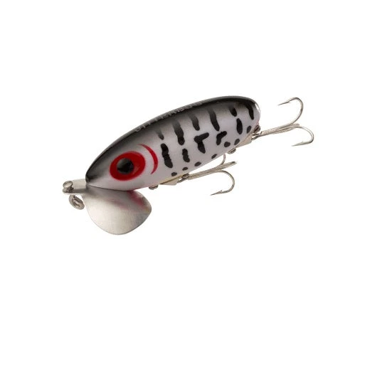 The Arbogast Jitterbug is the most respected topwater lure for night fishing, but it also produces explosive strikes throughout the day. The Jitterbug’s double cupped lip, placed at precisely the correct angle, produces the loud, rhythmic, surface-busting sound that is proven to be irresistible to bass, pike and other gamefish.