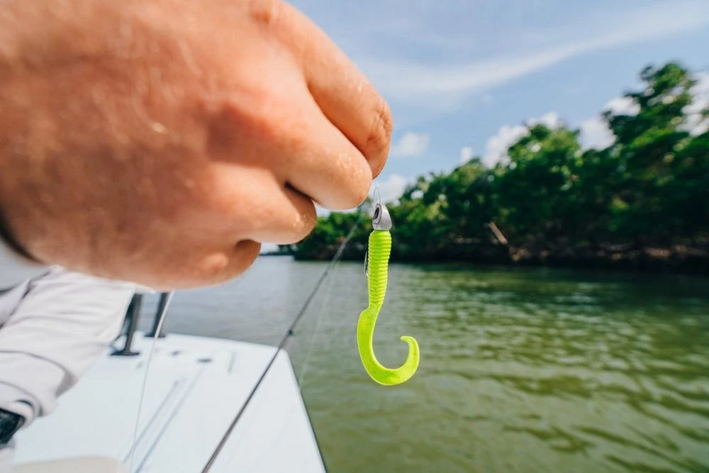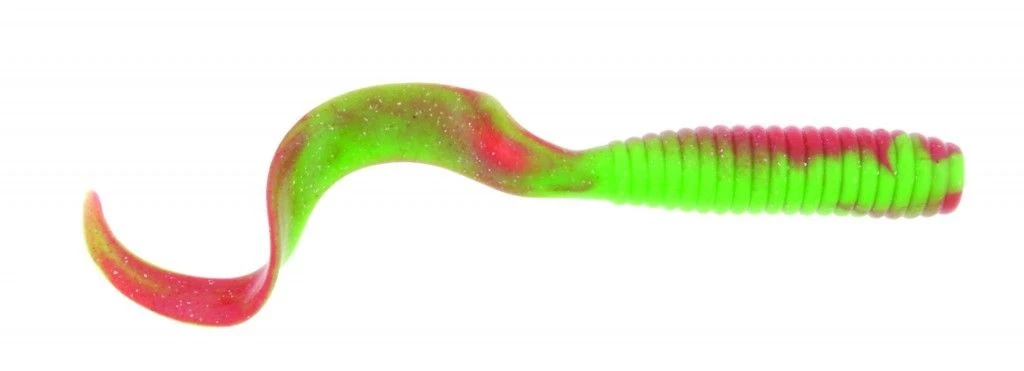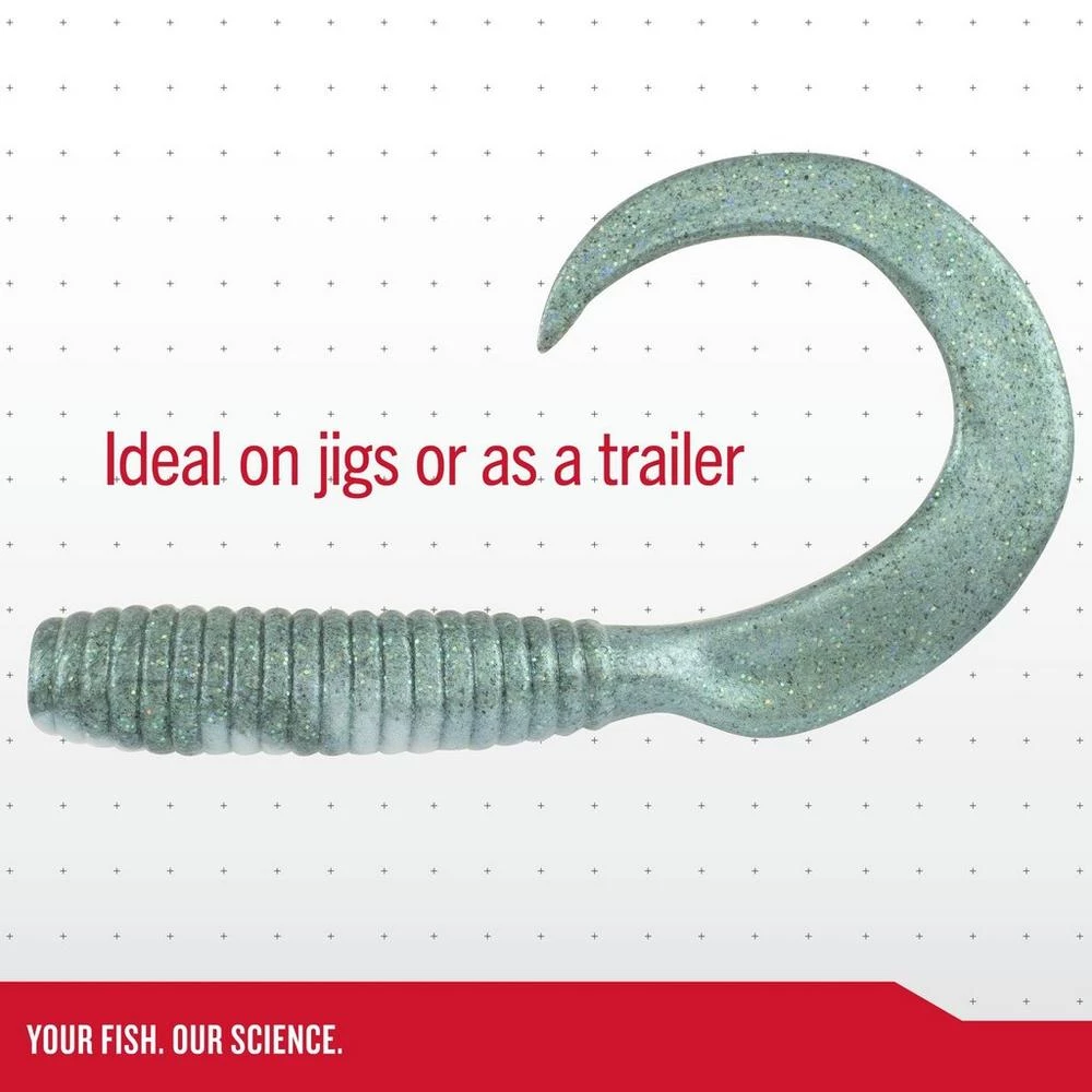 Fish-attracting Gulp! scent disperses in water. Gulp! flavor ensures fish bite and don’t let go. Curled tail with proven action.
