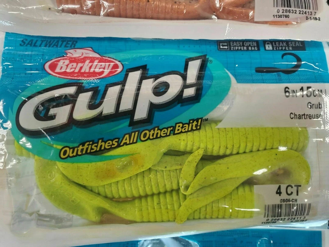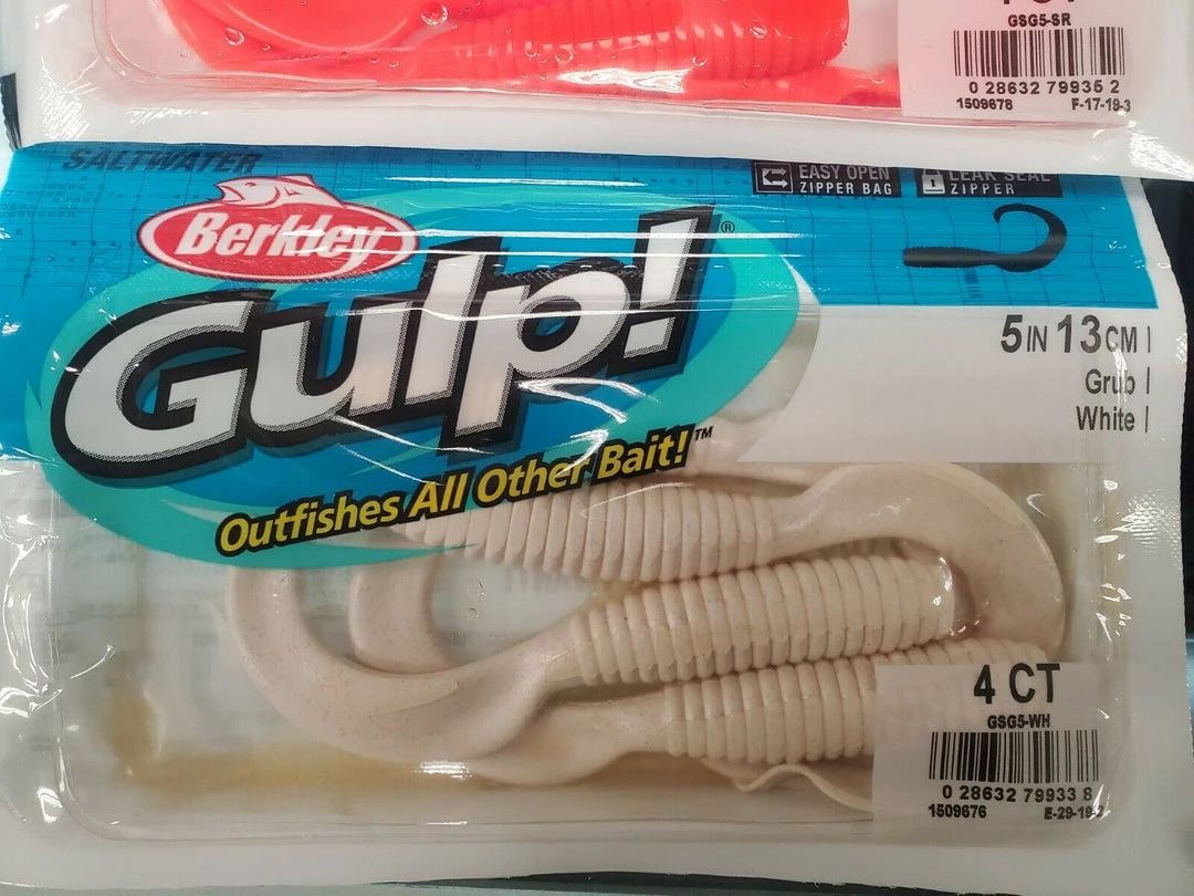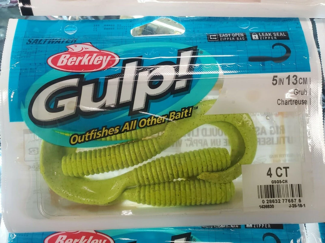 Exuding the ultimate water-activated scent, the Berkley® Gulp!® Saltwater Grub attracts fish from long distances – and when they arrive, the irresistible Gulp! flavor ensures they bite harder and longer so you can max out on hookups. Ideal on a jighead or used as a trailer, the SW Grub offers proven curl-tail action that appeals to all saltwater predators. Made in USA.