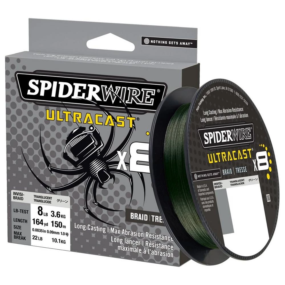 The best of SpiderWire performance will be found in Ultracast! Made from 8 tightly woven 100E fibers, Ultracast effortlessly casts long distance while providing high strength and abrasion resistance, giving you the ultimate performance fishing line!