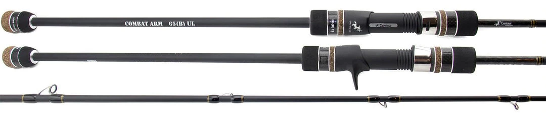The Centaur Combat Arm Slow Jigging is a series of rods specially designed for the Slow Jigging Game. Produced both for fixed spool reels and for rotating spool reels, this series has been produced with high modulus Toray carbon, to guarantee excellent performances both for bait recovery and for prey in complete safety. The guides are Fuji K series with Alconite stone, the reel seat is Fuji and the handle is in black EVA. In the spinning reel model, the rings have been spirally mounted to improve action and reduce the stress of the braid.