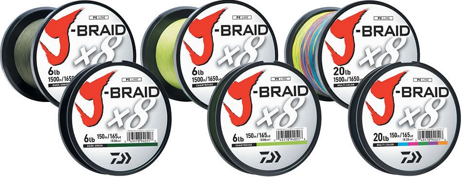 overhead reels, and available in bulk spools, J-Braid is colourfast, and