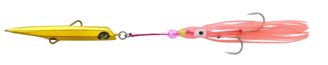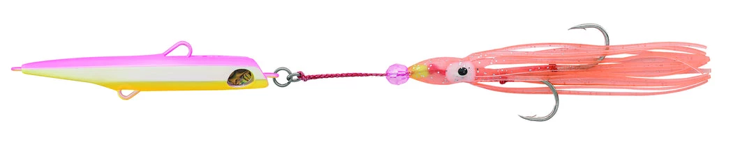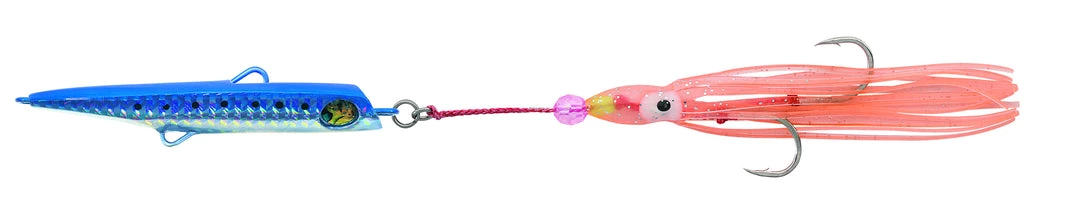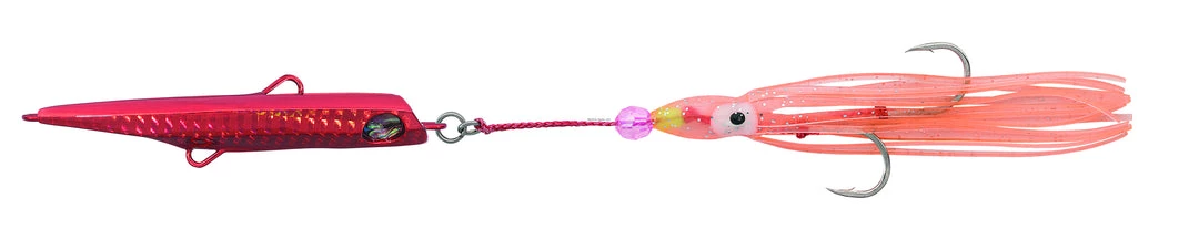 Inchiku Style Jig with a sleek bullet design, gets the jig down quickly to the targeted strike zone. Multiple anchor points provide a selection of rigging options. Slower presentation works best.