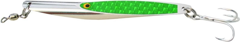 These lures are excellent for surf casting, deep jigging while drift fishing and even trolling. They are very popular along the east coast of the the USA for Striped Bass & Blue Fish. Vary the speed of retrieval to create the action you desire and the fish won’t say no. This style of Deadly Dick is becoming more and more popular for big lake trout and pike. On the west coast Rockfish, Ling Cod and Halibut just can’t resist! The #4 long is just shy of 4 oz. and can be fished effectively at depths of 180-200 ft., providing currents are not too swift. When given slack line while jigging, they have a slow flutter action making them an easy target for feeding Chinook (King) salmon. Match the colour and the size with the bait in your area and your Deadly Dick will work miracles for you!
