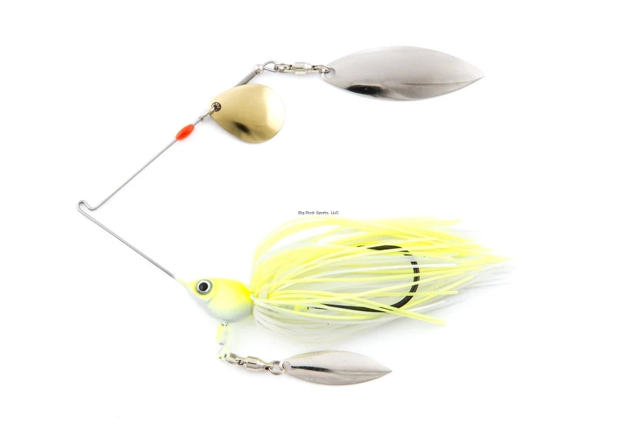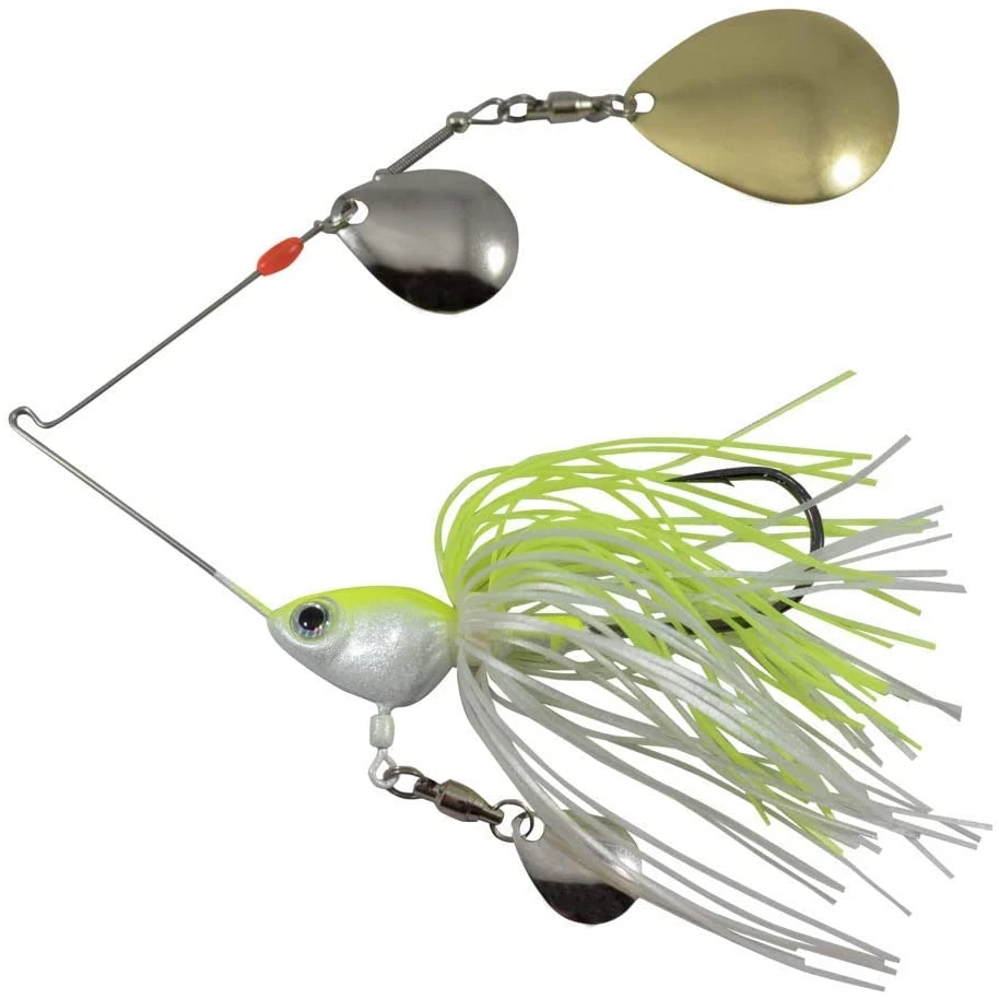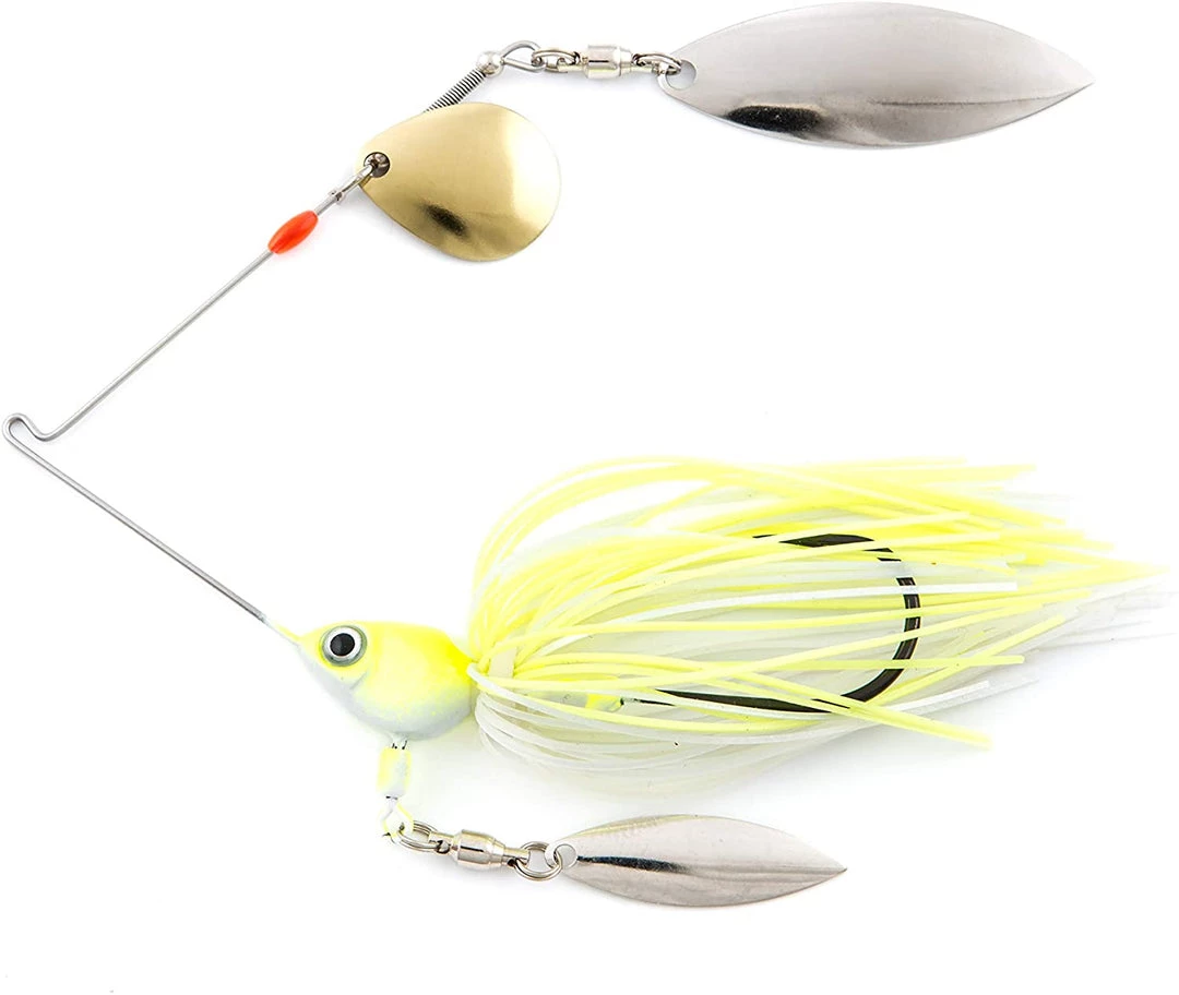 The Fish Head Primal Spinnerbait sends out a hypnotizing amount of flash and vibration, forcing fish to strike out of pure primal instincts. Featuring premium blades in a variety of combinations, as well as, another underspin blade attached to the head. This combination of blades helps it mimic a small school of baitfish, and allows it to put out more flash and vibration than any other spinnerbait on the market.