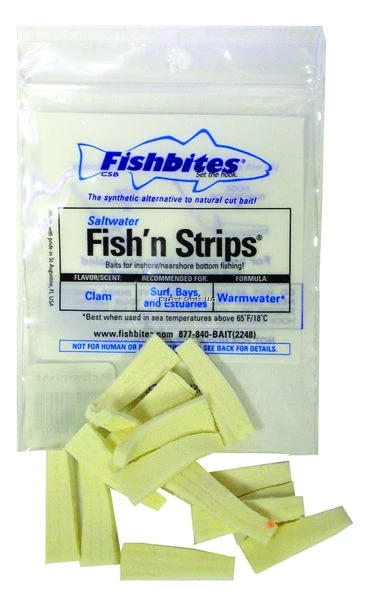 Fishbites Fish ‘n’ Strips Clam Longer Lasting Bait Strips, 1 1/2″, 0.8 oz, Flesh