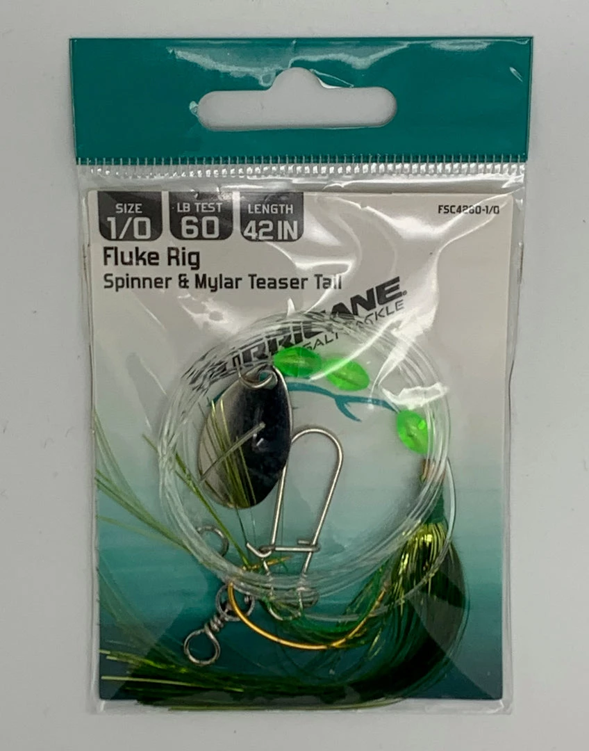 Hr. flaring 1/0WG spam Chat •1/0 gold plated wide gap hook •spinner, Red mirror beads & Mylar teaser tail to attract fluke •42in 60lb mono leader •quality Hurricane three way swivel & duo-lock snap there’s nothing like the fishing sport to calm your frazzled nerves or relax on a nice spring day.
