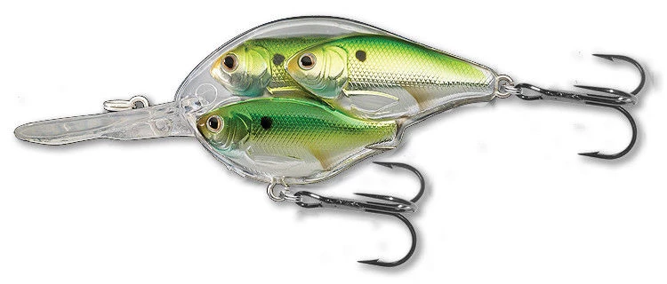 | Live Target Shad Baitball Squarebills | The Threadfin Shad BaitBall Squarebill unleashes the ingenuity of LIVETARGET’s lure design to deliver a unique crankbait. It is ideal to use when Juvenile Shad are shallow and using rocks and wood as ambush cover, especially when spawning. This lure is silent, has excellent deflection properties and is a fine choice to use around docks and other shallow cover. |