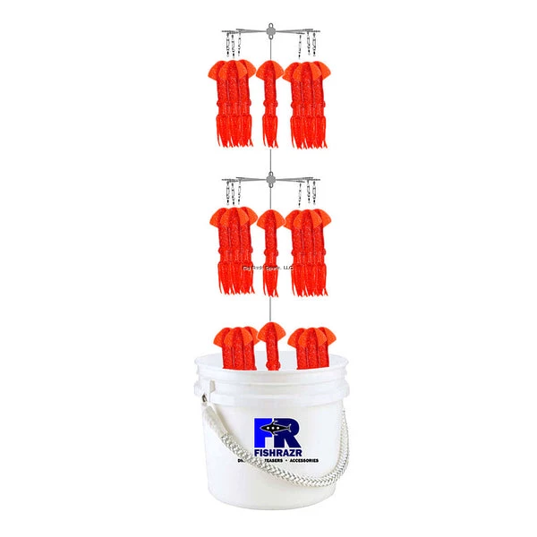 Fish Razr Bucket Dredge with 9″ Red Sparkle Squid