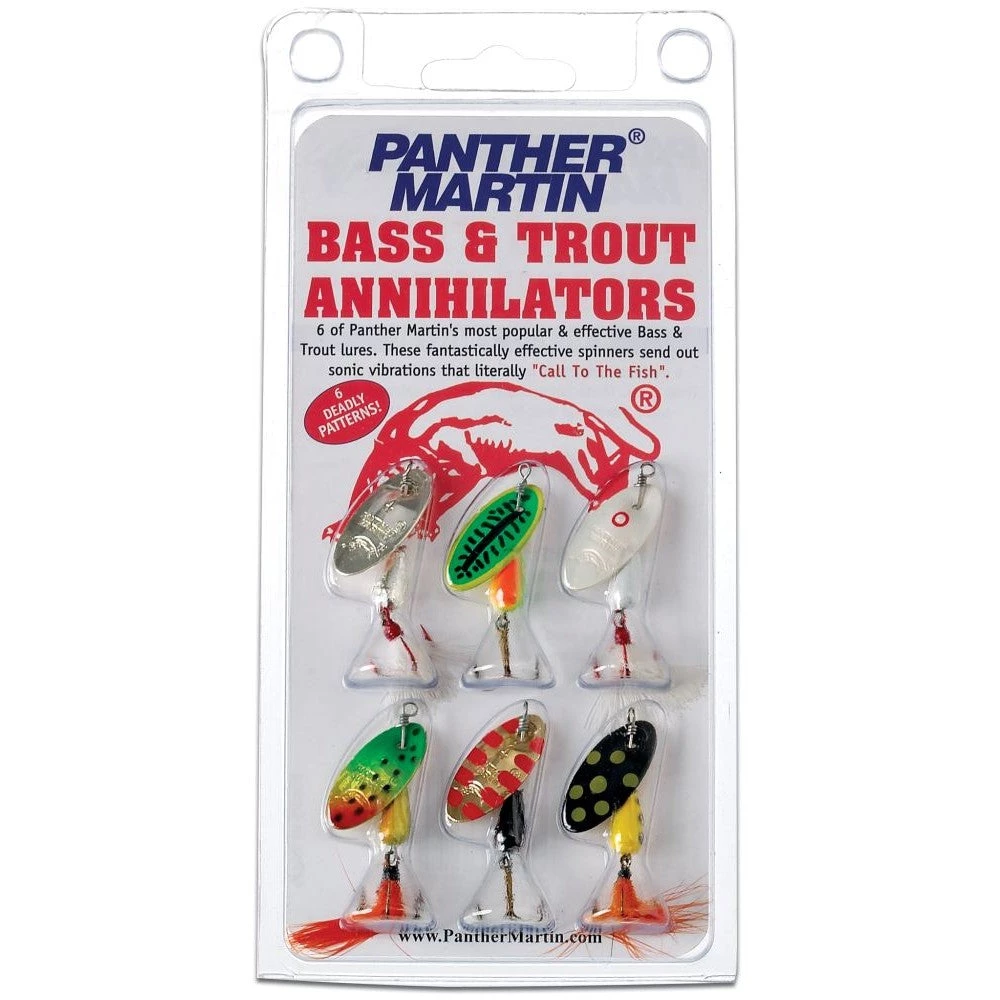 This Bass & Trout Kit contains 6 of our deadliest bass and trout lures. This great spinning lure kit features 6 Panther Martin spinning lures in 6 assorted bass and trout colors – all in 1/4 oz./ #6 size. These are all lures proven to catch bass and trout, based on our 56 years experience of fishing and selling these great lures. Nicely packed in a reusable lure case, this 6-pack is an incredible value.