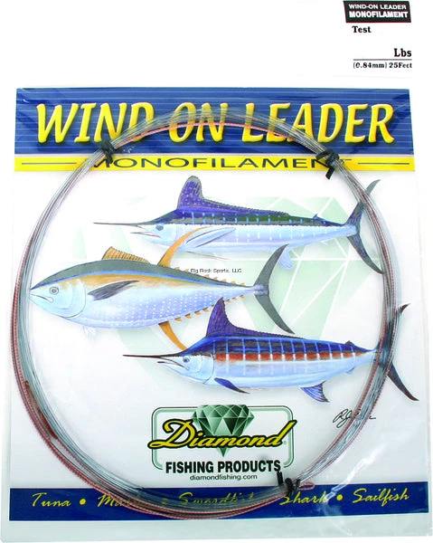Diamond’s high strength monofilament and fluorocarbon combined with a low stretch dyneema loop creates the strongest, most dependable wind-on leader in the world. Diamond’s Wind-On leaders are attached with a loop to loop connection to your fishing line. The wind-on system improves bait presentation, eliminates the need for conventional long leaders and provides safer handling and releasing of fish at the boat.