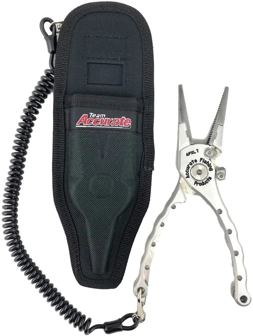 The Accurate Offshore Cutters/Pliers are made from aircraft-grade aluminum and will cut virtually all sizes of monofilament line and high-tech braided lines. The 7-inch model, at 4.8 ounces, is ideal for cutting all sizes of nylon monofilament, plus braided lines and light wire. The 8-inch model, at 5.6 ounces, has greater cutting power and is well suited for mono and all braided lines from “micros” to “super” sizes. Made to last a lifetime, both models have been shop-tested to hold sharpness after hundreds of cuts, leaving no frayed ends in braids down to as thin and light as 30-pound test. Self-coiling lanyard and protective Cordura sheath optional.