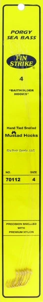 Fin Strike Porgy-Sea Bass Snelled Hook, Size 4, Baitholder, Gold, 6 per Pack