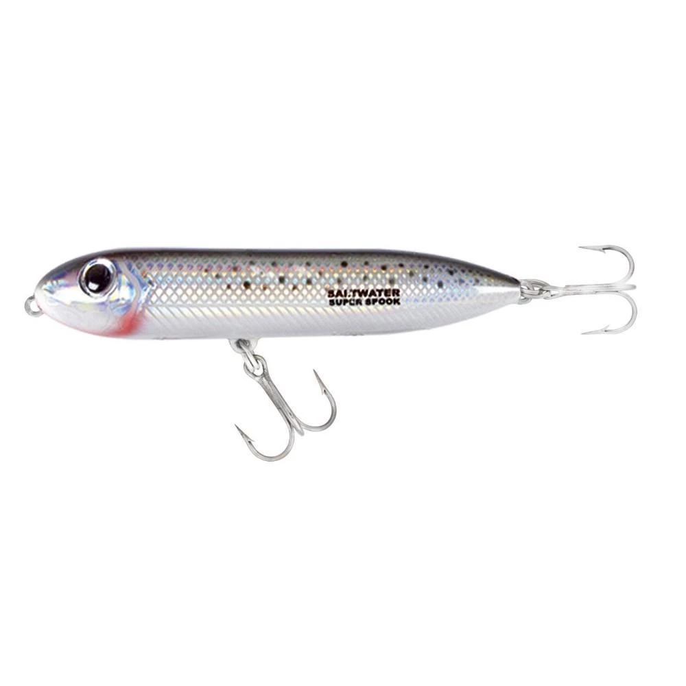 The Heddon Super Spook Jr. features the tough construction and good looks of the full-sized Super Spook in a smaller, but still explosive, fish catching design. Rugged line ties and hooks ensure the Super Spook Jr. will hold up to opportunistic charges from schooling fish. Realistic finishes provide the proper look for virtually any topwater fishing situation.