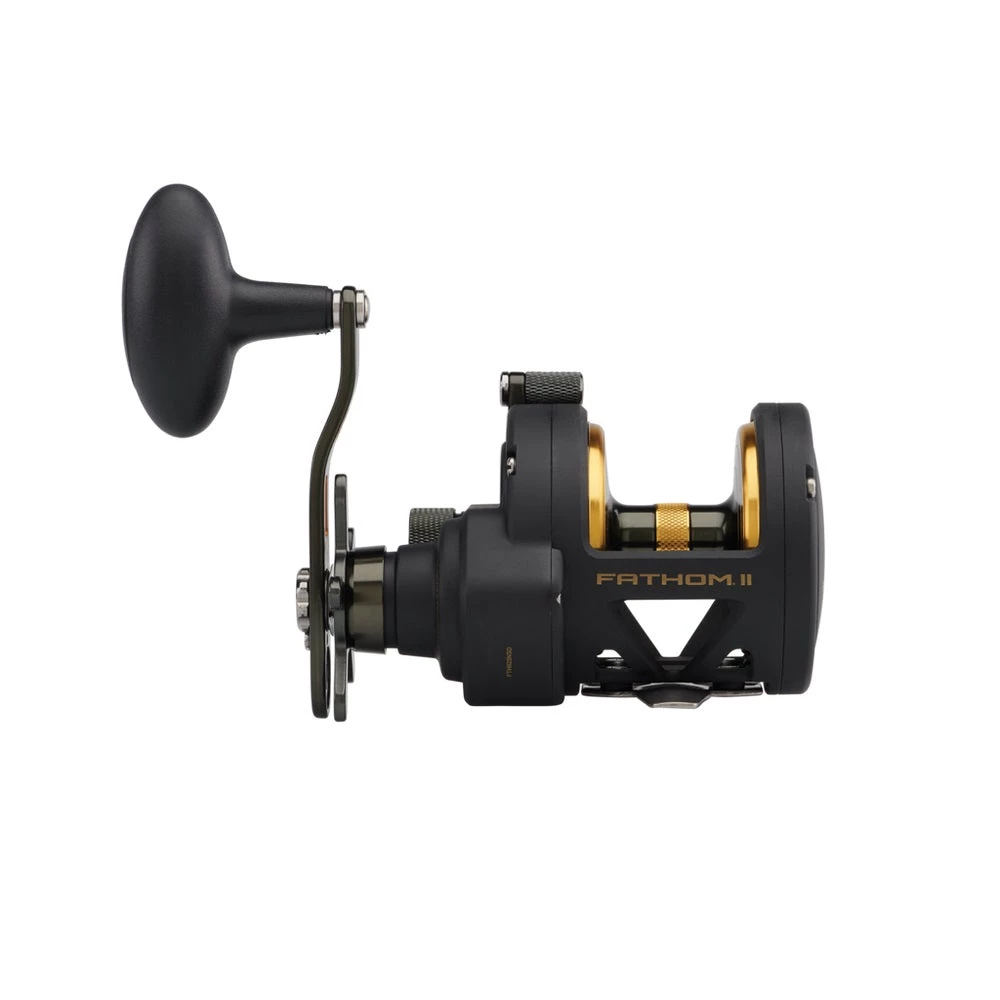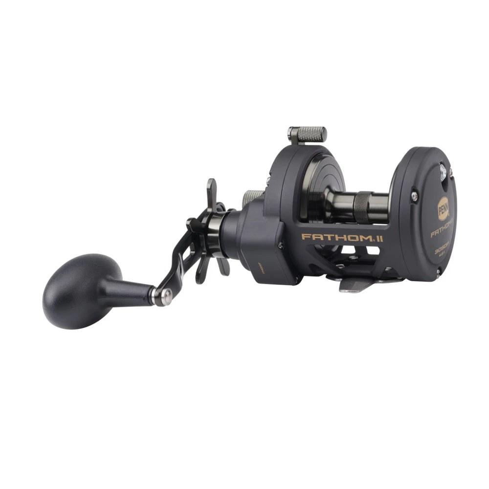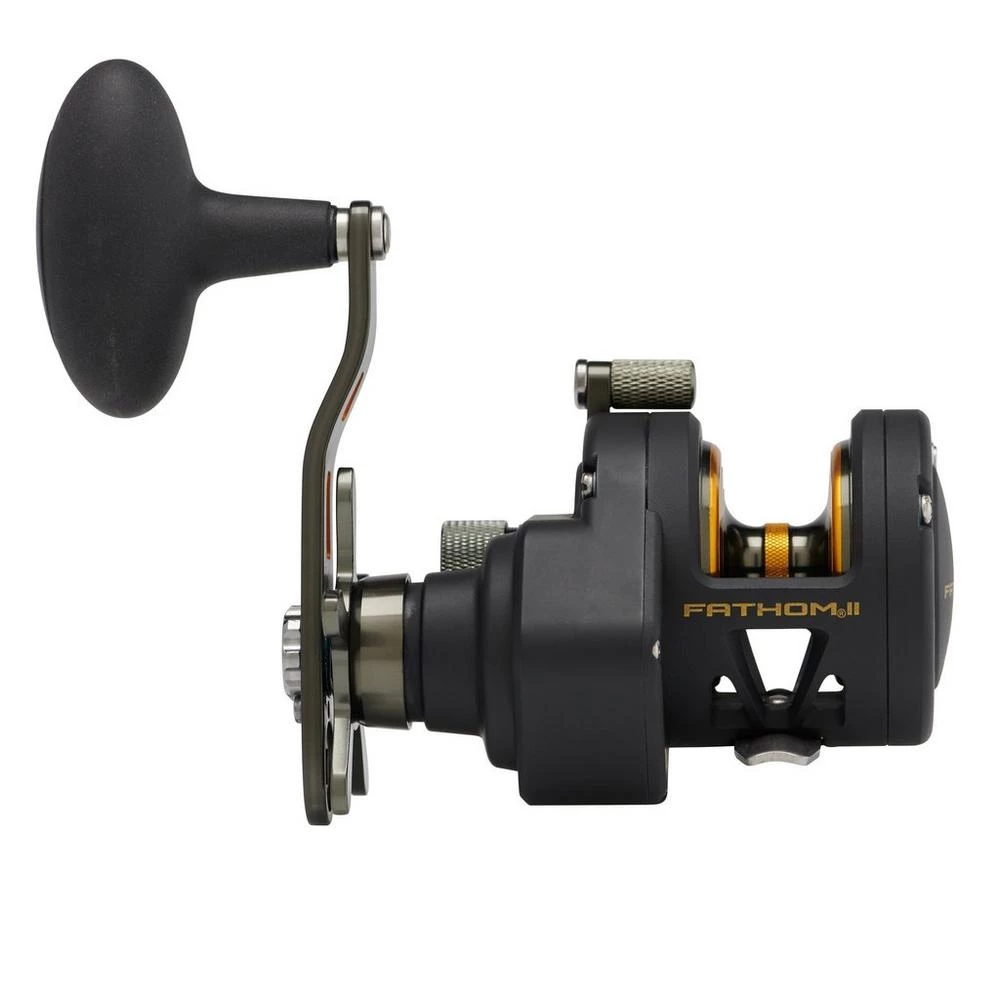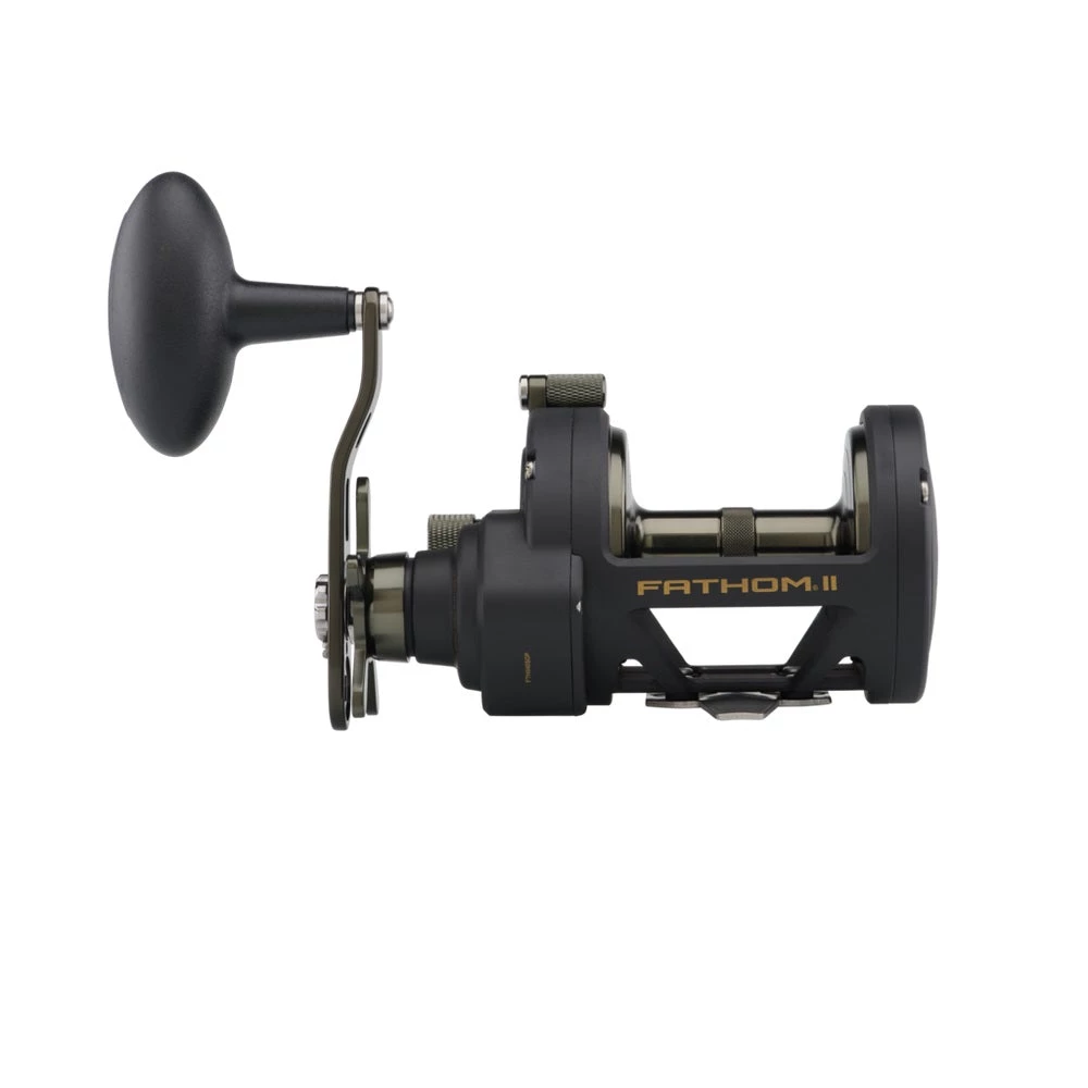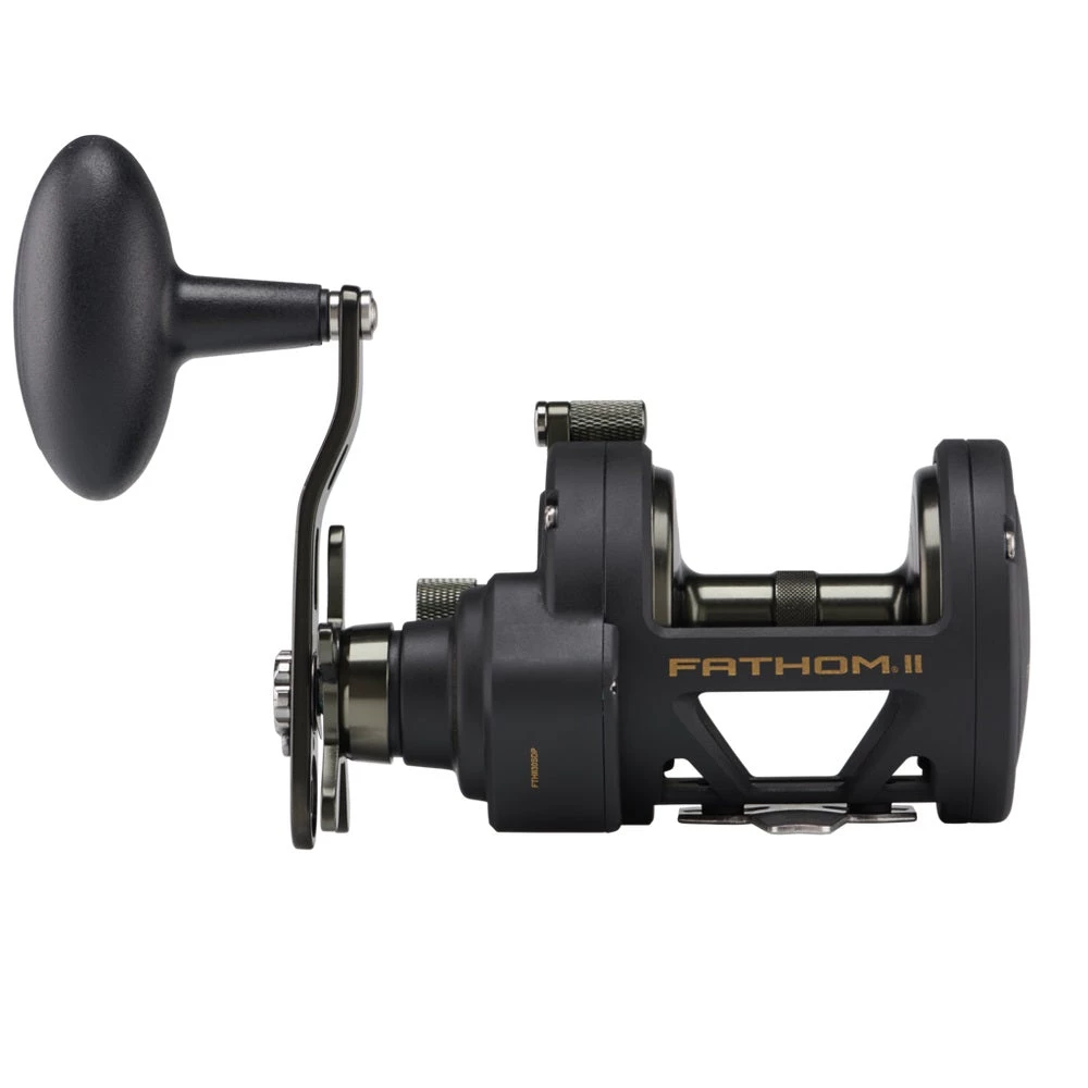 The second generation PENN Fathom II star drag reel is built with a rigid metal frame and sideplates, now with added features to make it more angler friendly than ever. Featuring our fast gear access sideplate, any angler can service their gears and HT-100 drag system quickly and efficiently. The PENN live spindle design offers long, effortless casts, while the power gear ratios (select models only) give ultimate torque for winching up deep fish. Magnetic casting brake available on 12 and 15 sizes only. Full metal body and sideplates. Fast gear access sideplate. Machine-cut marine grade bronze main gear with hardened stainless steel pinion. Live Spindle with free floating spool. 6 shielded stainless steel ball bearing system. Instant anti-reverse bearing.