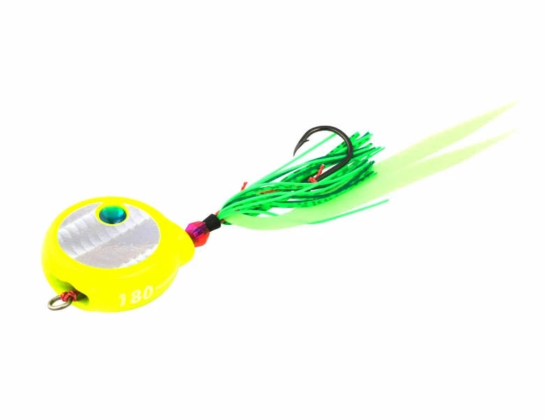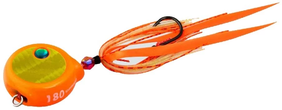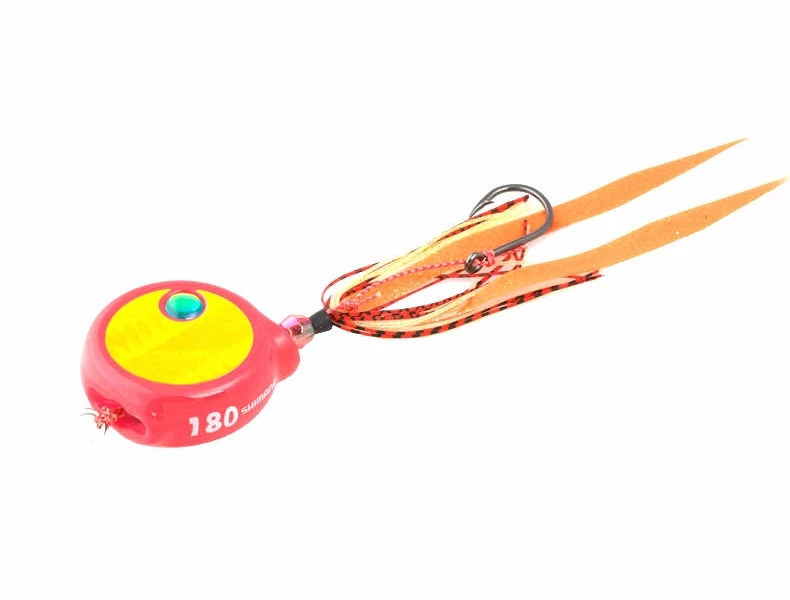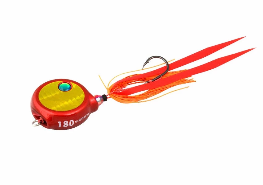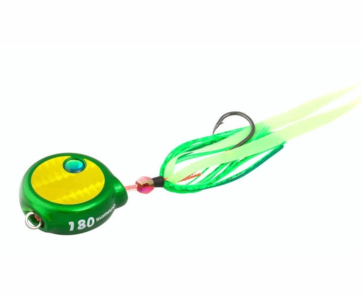 Shimano Lucanus Flat Fishing Jig Lure Bait. Shimano’s Lucanus Jigs is a fun and exciting approach to catching bottom species. The Lucanus Jig has an aerodynamic head design that lets it sink quickly to the bottom and stabilize the jig when it is retrieved. The Shimano Lucanus Jig also uses the multiple hook system to provide a higher hook-up ratio and a durable silicon skirts. The trailers wobble and vibrate during the jig movement.