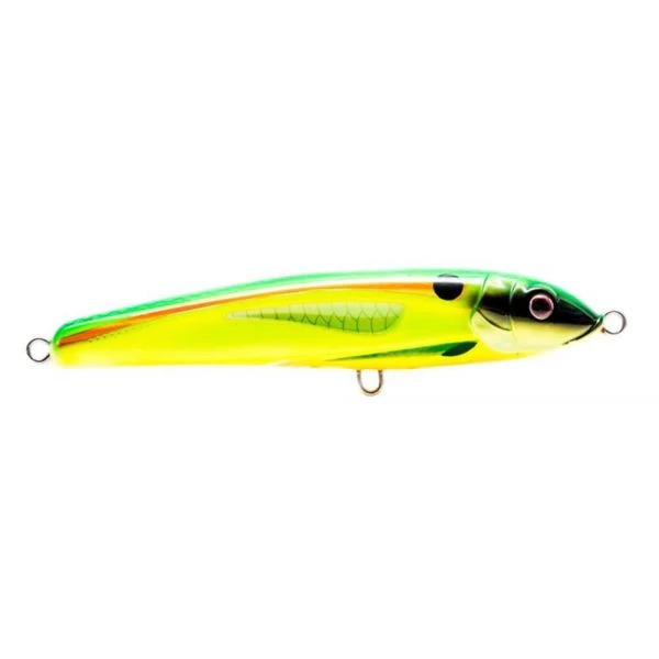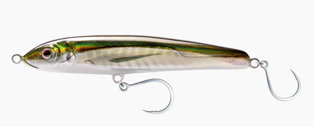 “S” in middle of sku = sinking, “F” = floating. “FS” = fast sinking. The Nomad Design Riptide has the perfect slender bodied profile to imitate pilchards, mullet, sardines, and dozens of other baitfish species. From far offshore to lagoons and freshwater environments, the classic side to side “walk the dog” action of the Riptide is highly effective for just about any predatory species. The Riptide family of stickbaits features nearly every size and application of floating, sinking, and fast sinking lures, each being uniquely weighted and balanced to provide superior casting and action. The HD ABS plastic body is constructed around Nomad Design’s Gorilla Through Wire system, making the lure highly durable. All sizes except for the 265mm are fitted with super strong split rings and BKK inline single or treble hooks, allowing the Riptide to be fished straight out of the box with confidence.