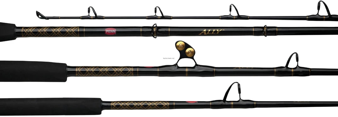 Penn Ally Boat Rods are constructed with a one-piece tubular glass blank and a solid tip to help prevent breakage. For line management Penn has added Fuji stainless steel guides with aluminum oxide inserts. Standup models feature both Fuji guides and Pac Bay rollers. For added comfort, Ally rods feature PENN’s Triangular-shaped EVA Torque foregrip to reduce rod rotation while under pressure. Heavy duty graphite and machined aluminum reel seats keep a secure grip on the reel, while an aluminum gimbal provides added strength and a secure connection during the fight. 1 piece tubular glass blank with solid tip. Fuji aluminum oxide guides.Pac Bay roller guides (Select Models). Triangular shaped EVA grips. Heavy duty graphite reel seat (Select Models). Machine aluminum reel seat (Select Models).
