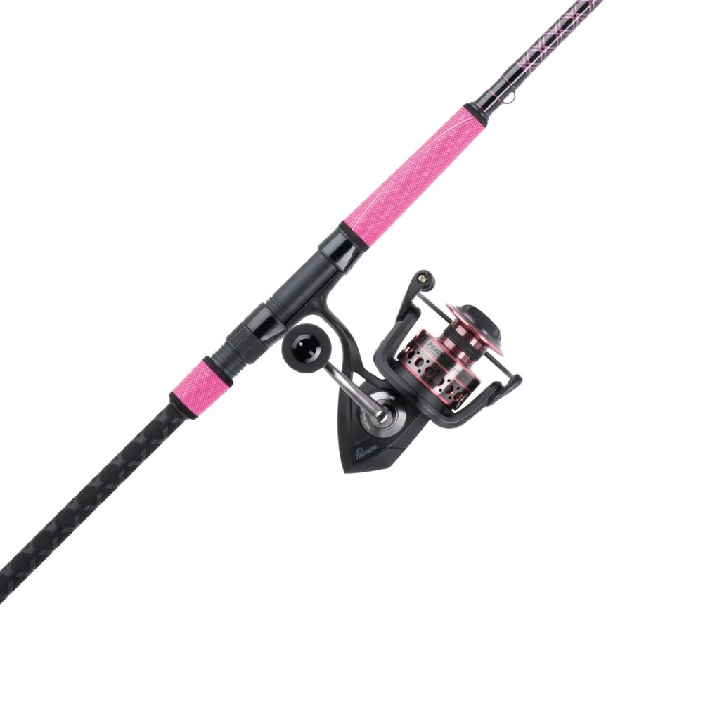 The PENN Passion combos feature our Passion reels which use a Full Metal Body for strength, combined with an RR30 rotor to reduce weight. A 5+1 stainless steel bearing system combined with our proven HT-100 drag system provide smooth operation during the cast, retrieve, and while fighting a fish. The rod has our exclusive WINN grips designed to fit the female anglers hands, along with a graphite composite blank, graphite reel seat, and Aluminum Oxide guides. PENN® is a proud supporter of the American Breast Cancer Foundation (ABCF). Pure Fishing actively provides financial support through its partnership with the American Breast Cancer Foundation. FEATURES Full Metal Body Rigid Resin RR30 Techno-Balanced™ rotor 5+1 sealed stainless steel ball bearing system HT-100™ carbon fiber drag washers Graphite composite blank Ergonomic WINN grips