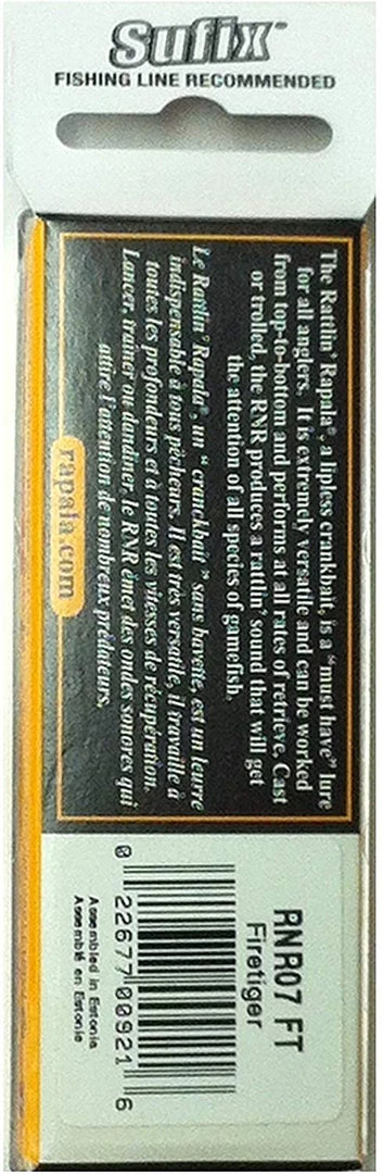 Rapala Rattlin’ Rapala Lipless Crankbait, 2 3/4″, 1/2 Oz, Firetiger, Sinking
