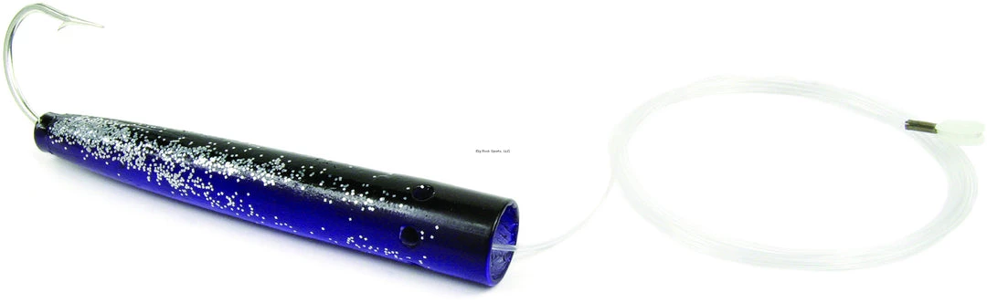 The jet head Cedar Plug has all of the fish catching features of the original Cedar Plug. The jet flow head makes an irresistible bubble or smoke trail. Available rigged in East Coast or West Coast style. Models rigged East Coast style have 8′ of leader, a plastic thimble and size 10/0 style 3412 Mustad hook. Models rigged West Coast style have 4′ of mono and a 2/0 crane barrel swivel.