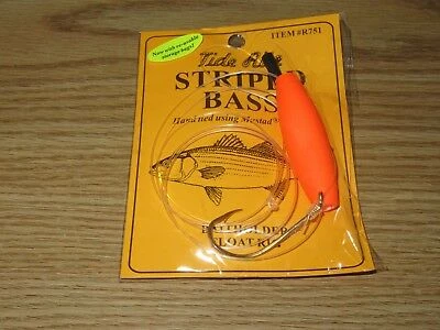 Tide Rite Hand Tied Baitholder Hook Float Striped Bass Rig, Gold (R751)