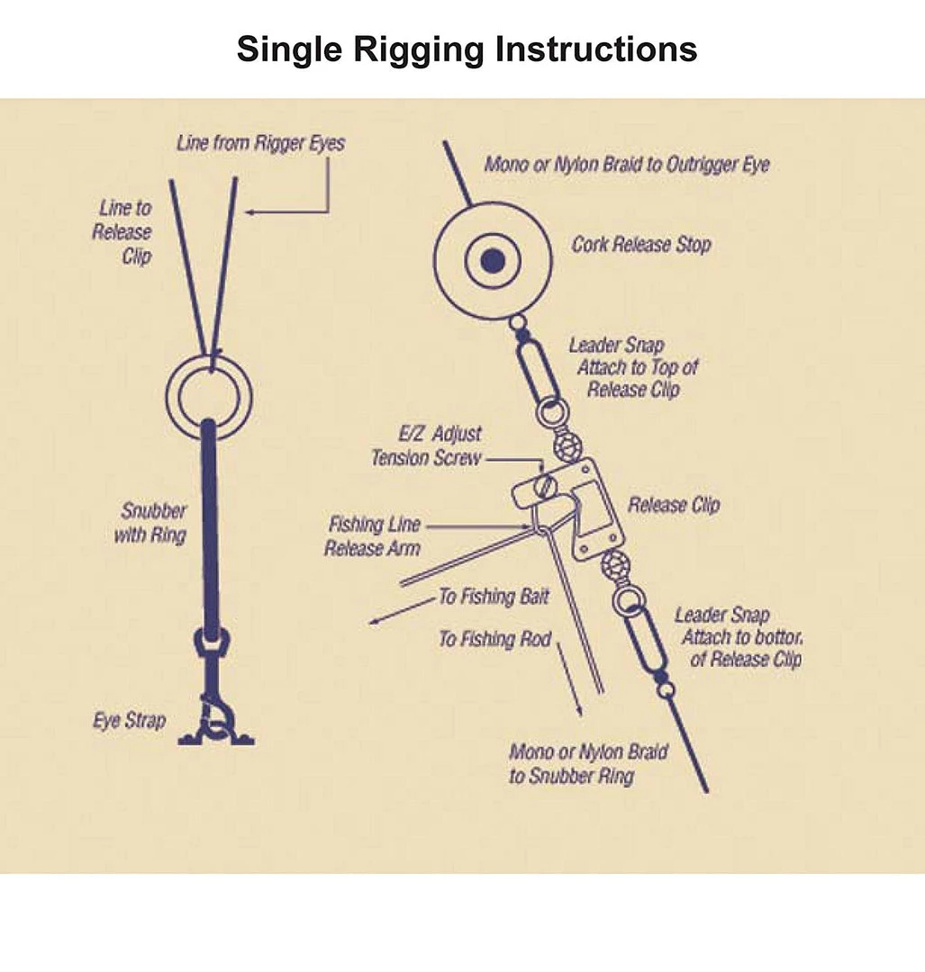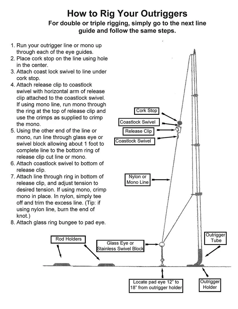 The tigress line of outrigging kits features a great selection of kits to fit the needs of any fisherman. Whether you have 15′ skiff poles or 35′ double rigged tournament poles, tigress has a rigging kit for you. All kits feature top quality materials and are ready to be installed. Each kit includes clips, mounting hardware, cord, snubbers, glass rings or snaps and pulleys.